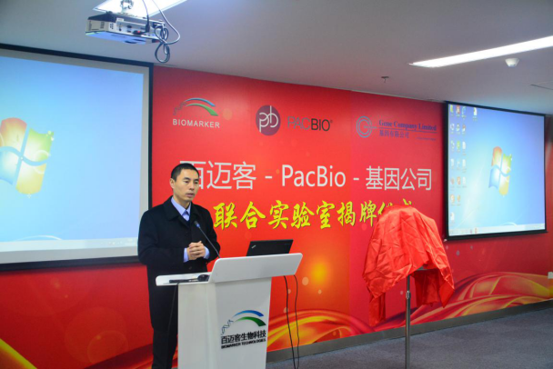 12 月27日,北京百邁客生物科技有限公司與PacBio、基因有限公司舉行了聯(lián)合實(shí)驗(yàn)室揭牌儀式。北京百邁客生物科技有限公司創(chuàng)始人、董事長(zhǎng)兼CEO鄭洪坤 先生,PacBio公司 Senior Director of Sales -North Asia(北亞區(qū)高級(jí)銷售總監(jiān))牟德宜女士;基因有限公司儀器事業(yè)部總經(jīng)理項(xiàng)連才先生等多位三方代表參加了揭牌儀式。轉(zhuǎn)化醫(yī)學(xué)、生物谷、測(cè)序中國(guó)作為特邀 媒體參加了本次揭牌儀式。