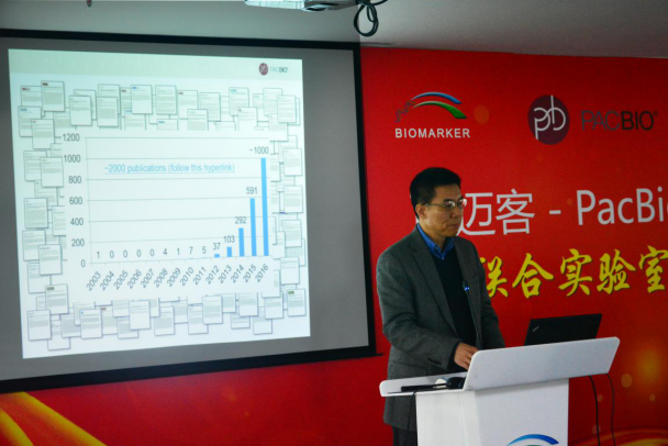 ? 隨后,PacBio公司 Senior Director of Sales -North Asia(北亞區(qū)高級(jí)銷售總監(jiān))牟德宜女士表示:“非常感謝百邁客鄭洪坤先生和基因公司對(duì)Pacbio技術(shù)的支持與開發(fā)。PacBio在NGS領(lǐng)域是一個(gè) 新的公司,我們堅(jiān)信三代是未來技術(shù)發(fā)展的方向,解決了許多二代測(cè)序無法解決的難題!PacBio 10年來的研發(fā)已經(jīng)把單分子測(cè)序的質(zhì)量和產(chǎn)量提高到一個(gè)更好的境界,目前已應(yīng)用在物種解讀以及精準(zhǔn)醫(yī)學(xué)的領(lǐng)域。但是,再好的技術(shù)如果沒有好的合作伙伴,將 是一個(gè)空談。我們很欣慰百邁客公司應(yīng)用三代技術(shù)提供優(yōu)質(zhì)的服務(wù),我們期待以后能和百邁客有更全方面的合作,也期待三代的測(cè)序能夠在百邁客做更成熟局面的 開發(fā)。”