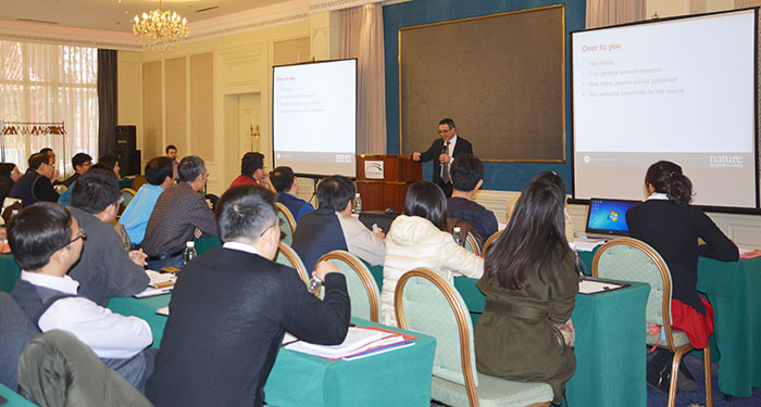 隨后的交流中,兩位大師級(jí)的資深編輯,圍繞論文寫作與發(fā)表的主題,重點(diǎn)講解了如何將研究成果轉(zhuǎn)化為科研論文,包括科學(xué)論文寫作的關(guān)鍵點(diǎn),以及如何正確使用 學(xué)術(shù)語言等。同時(shí),對(duì)科學(xué)出版流程,論文提交流程,以及同行評(píng)議流程等做了詳細(xì)的講解。對(duì)于一些焦點(diǎn)問題,比如如何向高影響力的期刊提交論文,如何與編輯 和評(píng)閱人進(jìn)行溝通等,兩位大師結(jié)合自身的豐富工作經(jīng)歷,與學(xué)員進(jìn)行面對(duì)面的傳授經(jīng)驗(yàn)。在“Q & A”環(huán)節(jié),學(xué)員們結(jié)合自身撰寫科研論文的經(jīng)歷或遇到的困惑,與兩位大師開展了熱烈的互動(dòng)和討論。培訓(xùn)班反響熱烈,參會(huì)學(xué)員均表示汲取了經(jīng)驗(yàn),開拓了視野, 受益匪淺,希望以后有機(jī)會(huì)參與后續(xù)的系列講座。