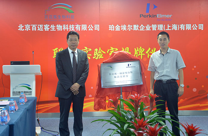 8月14日,北京百邁客生物科技有限公司與珀金埃爾默企業(yè)管理(上海)有限公司舉行了聯(lián)合實(shí)驗(yàn)室揭牌儀式。北京百邁客生物科技有限公司創(chuàng)始人、董事長(zhǎng)兼 CEO鄭洪坤先生,珀金埃爾默亞太區(qū)生命科學(xué)副總裁兼總經(jīng)理、大中華區(qū)總裁顧憲進(jìn)先生,偕同多位雙方代表參加了揭牌儀式。