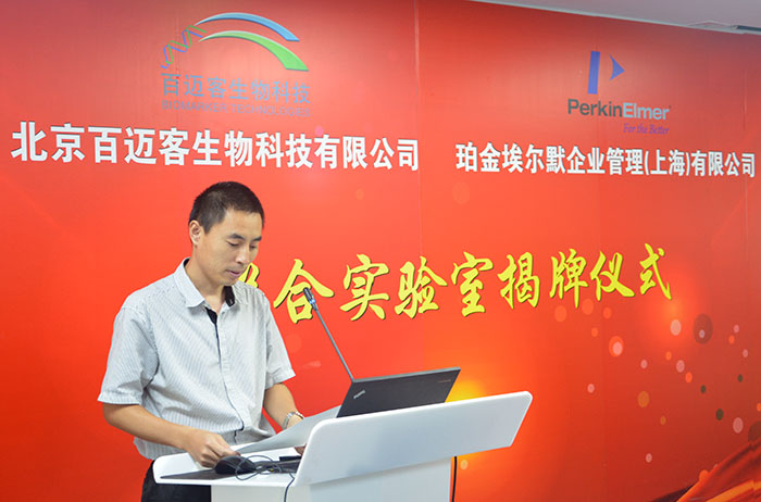 本次揭牌儀式上,珀金埃爾默NGS和自動(dòng)化市場(chǎng)總監(jiān)Michael博士,北京醫(yī)院藥學(xué)部臨床藥理及臨床藥學(xué)室楊麗萍主任,以及百邁客公司的高級(jí)技術(shù)人員做 了精彩的報(bào)告。儀式最后階段,百邁客市場(chǎng)部經(jīng)理張軍帶領(lǐng)參會(huì)人員參觀了百邁客的實(shí)驗(yàn)室,講解了百邁客的發(fā)展歷程。