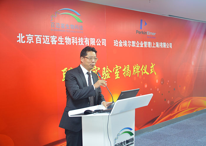 揭牌儀式上,百邁客CEO鄭洪坤在致辭中表示:“百邁客與珀金埃爾默公司建立聯(lián)合實(shí)驗(yàn)室,將展開深入合作。雙方將聯(lián)合開發(fā)更加適用于高通量測(cè)序的 自動(dòng)化文庫(kù)構(gòu)建系統(tǒng),此舉將大大提升測(cè)序前樣品處理的自動(dòng)化水平,提高百邁客在基因測(cè)序行業(yè)的競(jìng)爭(zhēng)力。與此同時(shí),珀金埃爾默公司也將借助百邁客在國(guó)內(nèi)的營(yíng) 銷體系進(jìn)一步拓展在中國(guó),乃至亞太地區(qū)的市場(chǎng)占有率。珀金埃爾默公司覆蓋全球的業(yè)務(wù)團(tuán)隊(duì)也將助力百邁客生物云平臺(tái)在全球市場(chǎng)的開拓。我相信在雙方共同努力 下,通過真誠(chéng)密切的實(shí)質(zhì)性合作,聯(lián)合實(shí)驗(yàn)室的建設(shè)一定會(huì)達(dá)到互惠雙贏,共同發(fā)展的目的,一定會(huì)為企業(yè)合作塑造新典范,貢獻(xiàn)新經(jīng)驗(yàn)。”