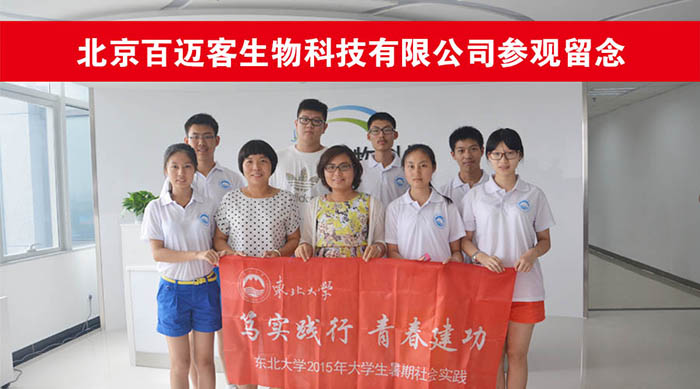 2015年8月7日下午13:30時(shí),東北大學(xué)生物工程專業(yè)的7名大學(xué)生來到百邁客,進(jìn)行參觀交流。此次暑期參觀活動(dòng)為東北大學(xué)校方支持的學(xué)生假期實(shí)踐活動(dòng)之一。