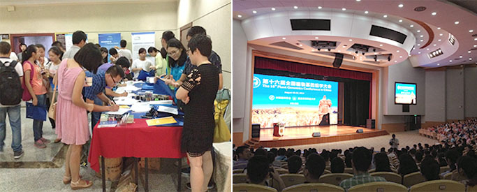 2015年7月22日,由中國植物病理學(xué)會主辦,海南大學(xué)環(huán)境與植物保護(hù)學(xué)院等承辦的“中國植物病理學(xué)會2015年學(xué)術(shù)年會暨第五屆中美植物病理學(xué)學(xué)術(shù)研 討會”在??谑姓匍_。本屆學(xué)術(shù)年會以“協(xié)同創(chuàng)新,綠色健康,開啟植物病理學(xué)的新未來”為主題,共吸引了1200多名科研工作者參加。大會共設(shè)真 菌及真菌病害、病毒及病毒病害、抗病性與分子互作等七個分會場。北京百邁客生物科技有限公司受邀參加了此次盛會,并在主會場思源大禮堂內(nèi)設(shè)立了展臺,該展 臺吸引了眾多專家學(xué)者前來交流。百邁客工作人員也就如何利用高通量測序技術(shù)解決植物病理學(xué)研究等問題同咨詢?nèi)藛T進(jìn)行了友好的溝通和交流,現(xiàn)場氣氛熱烈。