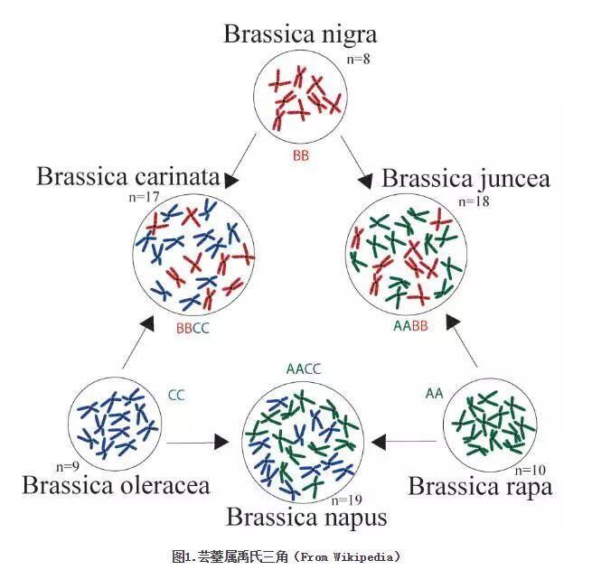 導(dǎo)致蕓薹屬種內(nèi)形態(tài)型多樣化以及種間趨同馴化的機(jī)制是什么?這是科學(xué)家們一直在探討的問題。然而蕓薹屬的起源進(jìn)化歷史也是相當(dāng)?shù)摹安ㄕ邸薄|薹屬的祖先 是一個具有7條染色體的二倍體,在約1200萬年前發(fā)生過一次全基因組三倍化事件,該事件導(dǎo)致一個具有42條染色體的古六倍體物種出現(xiàn)。隨后這個六倍體物 種的基因組發(fā)生了廣泛的二倍體化——有時候一條染色體的一段區(qū)域轉(zhuǎn)移到另一條染色體上,有時候某個區(qū)域會丟失,更有時候連整條染色體都會消失。最終六倍體 的又變回了二倍體的“模樣”,形成了現(xiàn)在的蕓薹屬二倍體物種分類格局?!绱藦?fù)雜的進(jìn)化歷史自然帶來不少的阻礙,所幸的是,借助于不斷發(fā)展的高通量測序 技術(shù)和生物信息分析方法,科學(xué)家們能夠從基因組層面解析物種的進(jìn)化機(jī)制成為可能。