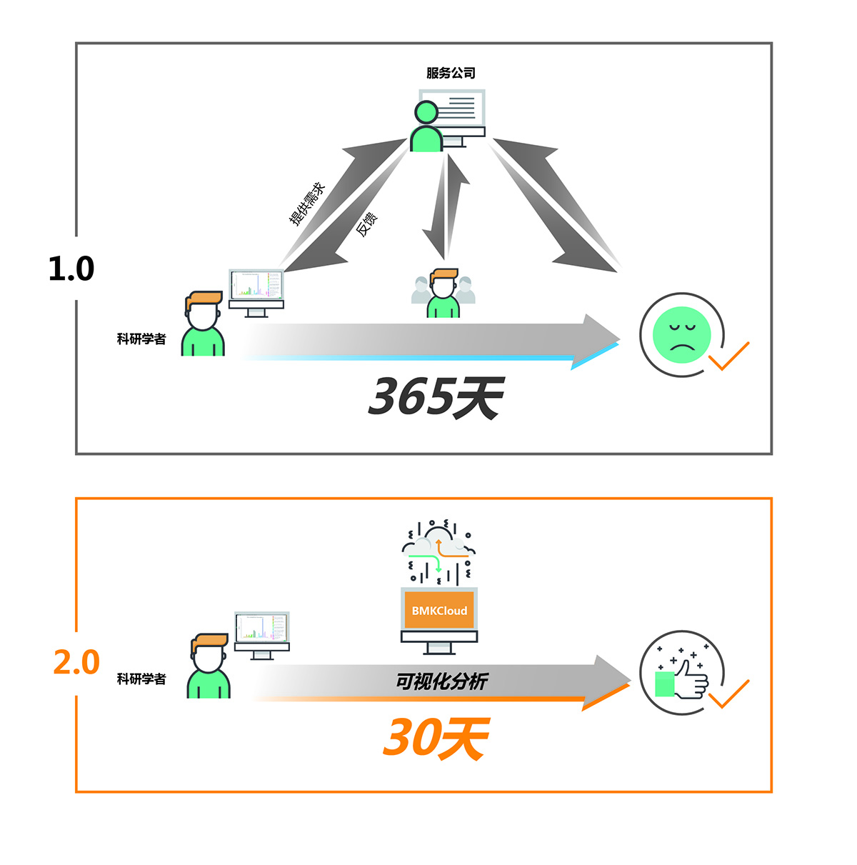 數(shù)據(jù)分析要求變高,對科技服務類公司無疑是個大的挑戰(zhàn)。首先,對科研數(shù)據(jù)的深入挖掘往往涉及到更深層次的科學問題,個性化程度極強,這就要求生物信息人員不但要掌握生信專業(yè)知識和技能,還有有相對豐富的生物學知識,才能真正理解科學家的需求,對服務人員的要求大大提高;其次,由于科研工作本身探索的就是未知領域,存在相當?shù)牟淮_定性,數(shù)據(jù)分析的結果不一定和科學家最初的科研設計一致,會導致科學家對服務公司的滿意度不高。因此科研工作者開始不斷的換公司進行嘗試,隨著小公司的不斷涌現(xiàn),稂莠不齊,科技服務市場也越來越混亂。數(shù)據(jù)分析同質化嚴重,數(shù)據(jù)深入挖掘程度不足,溝通效率低,分析成本高等開始制約科技服務行業(yè)的發(fā)展。因此必須通過變革,用一種新的更高效的模式來逐步優(yōu)化現(xiàn)有的科技服務模式。