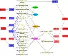 在上皮細胞生長網(wǎng)絡(luò)中,基因GPR1,89和155的表達上調(diào)導(dǎo)致LAMTOR3蛋白,蛋白激酶和ELK1表達上調(diào),這三種蛋白都存在于MAPK信號通路上,和細胞的增殖分化有關(guān)。此外,GPR1的 表達增加和酸性酰胺酶(ASAH1)的下調(diào)相關(guān),ASAH1存在于調(diào)節(jié)細胞凋亡、生存和增殖的信號通路上。對于HDACs家族基因HDAC4,5,6和10基因的上調(diào)和五個調(diào)節(jié)細胞凋亡,生存和增殖基因的下調(diào)有關(guān)。