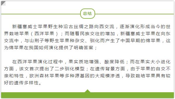 研究發(fā)現(xiàn),從新疆境內(nèi)采集的塞威士蘋果保持較高的同源性、最原始,而同屬中亞地區(qū)的哈薩克斯坦境內(nèi)的塞威士蘋果基因雜合度則相對較高。這充分說明,世界栽培蘋果起源于中國新疆。該研究確認全世界 蘋果的共同祖先是新疆野蘋果,歐洲的森林蘋果作為重要的基因貢獻者與現(xiàn)代蘋果之間存在大規(guī)?;驖B透。