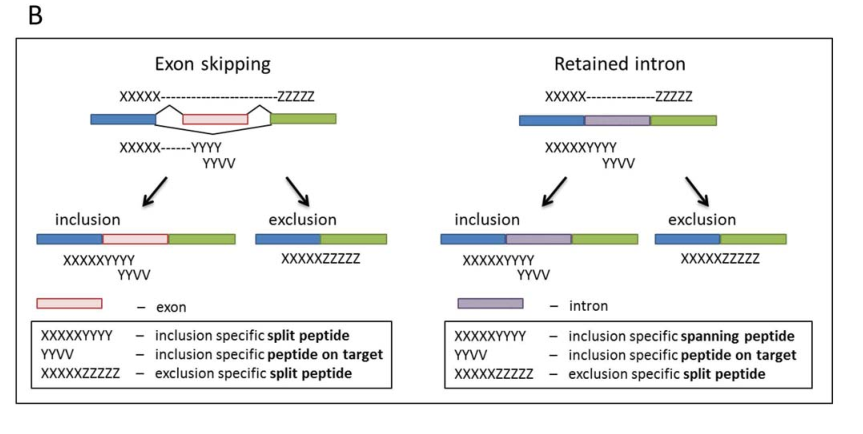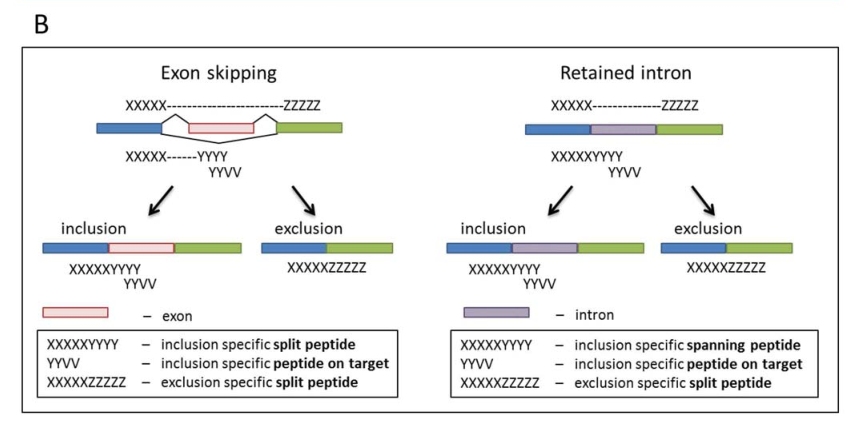 Splicify提供了一種蛋白組數(shù)據(jù)分析方法,可以用于確定由mRNA選擇性剪接產(chǎn)生的疾病特異性蛋白生物標(biāo)志物,適合用臨床前模型系統(tǒng)來解決基礎(chǔ)研究問題。其中剪接變異在RNA水平上的驗(yàn)證是通過RT-qPCR以及Iso-seq得到的全長(zhǎng)轉(zhuǎn)錄本進(jìn)行的;通過Iso-seq得到的全長(zhǎng)轉(zhuǎn)錄本可以對(duì)新的剪接事件在蛋白層面上進(jìn)行驗(yàn)證。