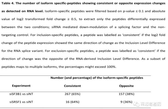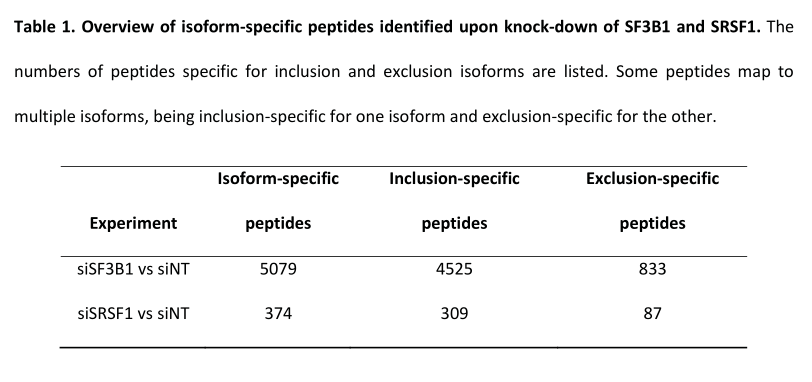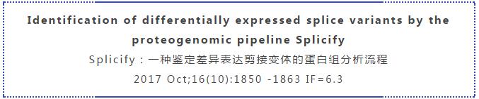Splicify的意義在于識(shí)別RNA水平和蛋白質(zhì)水平上的isoform。通過對(duì)RNA和蛋白水平的對(duì)比分析證明該方法能夠成功地識(shí)別特定條件下蛋白質(zhì)水平上的異常剪接事件。