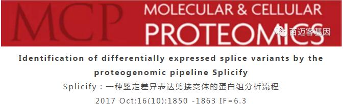 Splicify提供了一種蛋白組數(shù)據(jù)分析方法,可以用于確定由mRNA選擇性剪接產(chǎn)生的疾病特異性蛋白生物標(biāo)志物,適合用臨床前模型系統(tǒng)來解決基礎(chǔ)研究問題。其中剪接變異在RNA水平上的驗證是通過RT-qPCR以及Iso-seq得到的全長轉(zhuǎn)錄本進行的;通過Iso-seq得到的全長轉(zhuǎn)錄本可以對新的剪接事件在蛋白層面上進行驗證。
