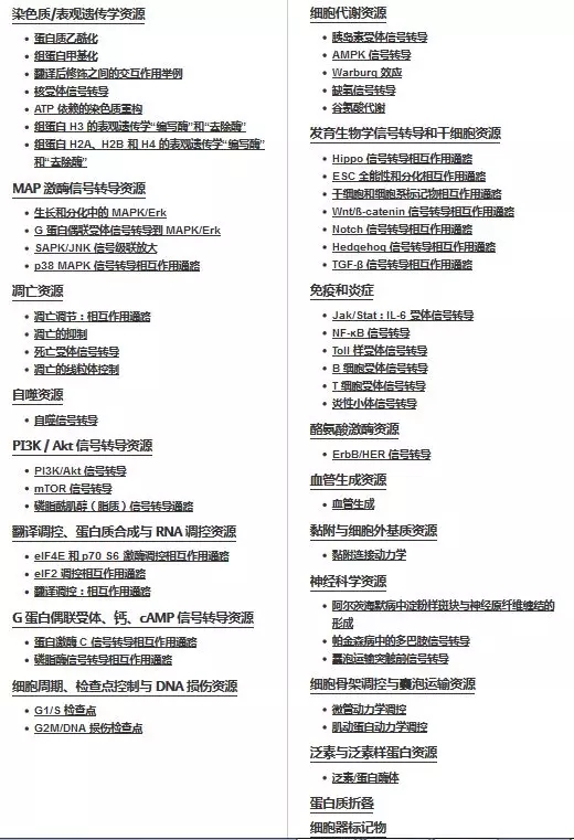 細(xì)胞信號通路收集自Cell Signaling Technology:https://www.cst-c.com.cn/contents/science/cst-pathways/science-pathways