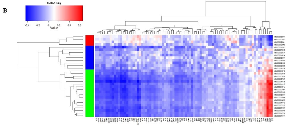 轉(zhuǎn)錄組測(cè)序:授粉10-20天,每個(gè)line取5株甜瓜的果肉混樣提取RNA,Illumina GAII和HiSeq 2000測(cè)序