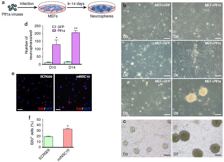 圖1 ptf1a直接將MEF轉(zhuǎn)化為神經(jīng)球
