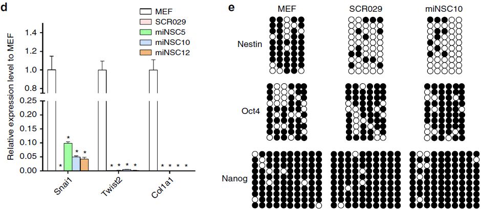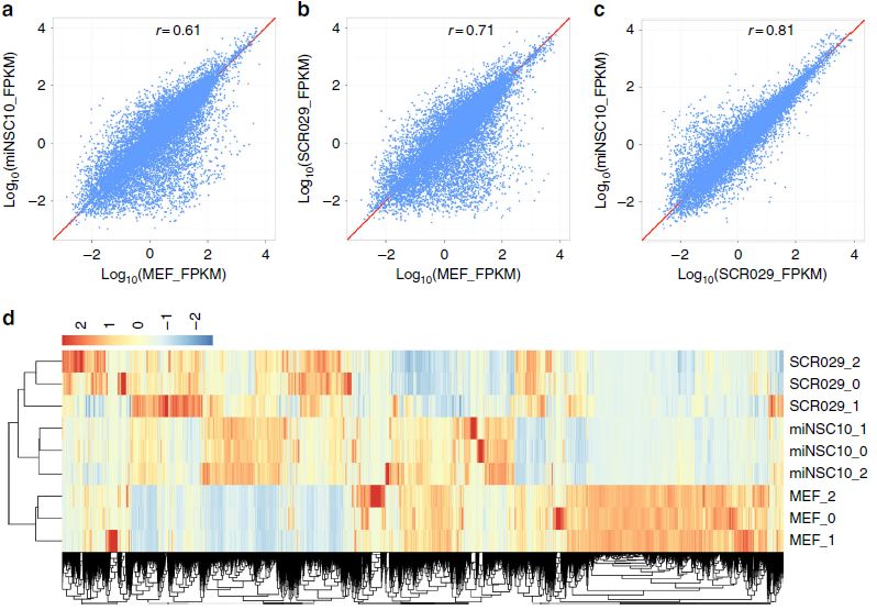 材料:35000個MEF細胞,50,000個miNSC10細胞,50,000個SCR029細胞。測序平臺:Illumina HiSeq X Ten。