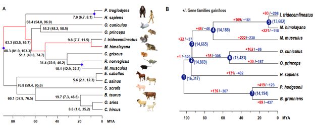 圖1、喜馬拉雅旱獺基因組進(jìn)化研究