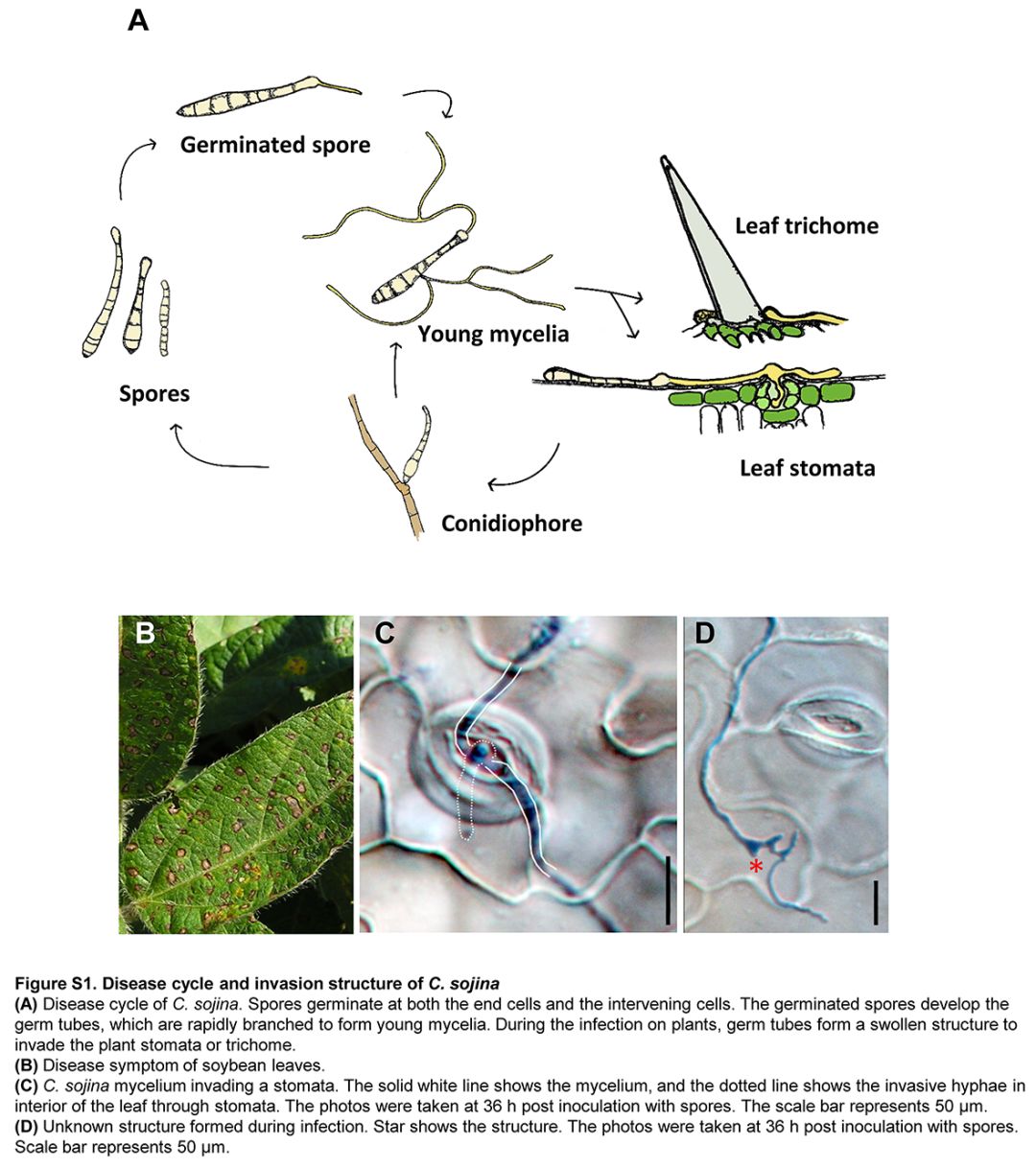 ? ? ??在本研究通過單分子實(shí)時(shí)測序技術(shù)組裝了C.sojina的高質(zhì)量基因組序列?;蚪M大小為40.8Mb,編碼11,655個(gè)預(yù)測基因,通過RNA測序揭示8,474個(gè)基因。C.sojina基因組包含大量參與合成次級(jí)代謝產(chǎn)物的基因簇,包括真菌毒素和色素。然而,與其他植物致病真菌相比,在C.sojina基因組中鑒定出較少的碳水化合物及蛋白編碼基因。生物信息學(xué)分析顯示C.sojina含有約752個(gè)分泌蛋白,其中233個(gè)是效應(yīng)子。在早期感染期間,代謝物生物合成和效應(yīng)子的基因顯著富集,表明它們可能在致病性中起重要作用,揭示了尾孢霉(Cercosporasojina?Har)對(duì)大豆的潛在致病機(jī)制。