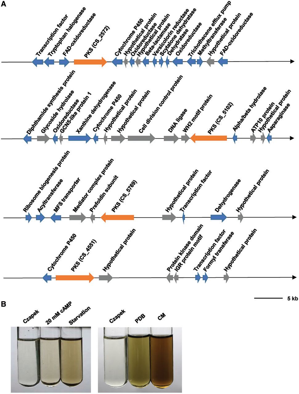 Figure 5. PutativePKS gene clusters for pigment production in?C.sojina.