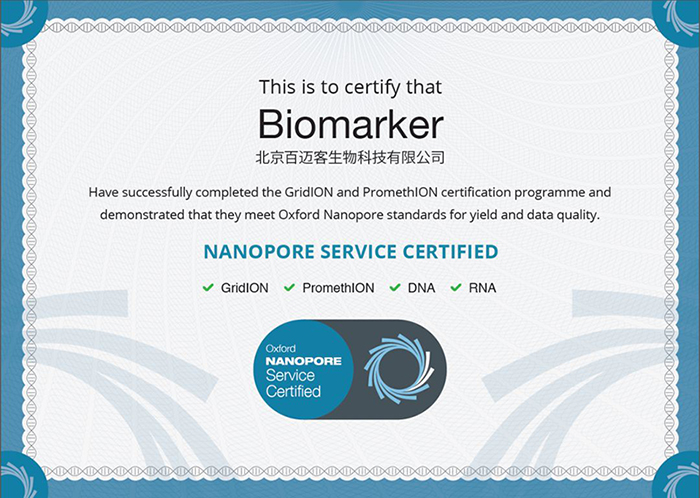 北京百邁客生物科技有限公司是中國大陸一家全部通過?PromthION/GridION平臺及DNA/RNA樣本官方認(rèn)證的公司。