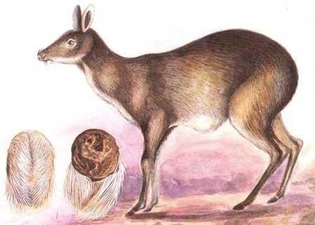 麝(shè)(Noschus noschiferus?Linnaeus),又稱為麝獐、香獐,種類少,麝的前肢短,后肢長,蹄小耳大,雌雄都無角,雄性有發(fā)達(dá)獠牙。麝棲居于山林,多在拂曉或黃昏后活動,聽覺、嗅覺均發(fā)達(dá)。雄麝臍香腺囊中的分泌物干燥后形成的香料即為麝香,是一種十分名貴的藥材,也是極名貴的香料。麝的數(shù)量急劇下降,因為人們?yōu)榱双@得麝香而不斷獵殺它們。