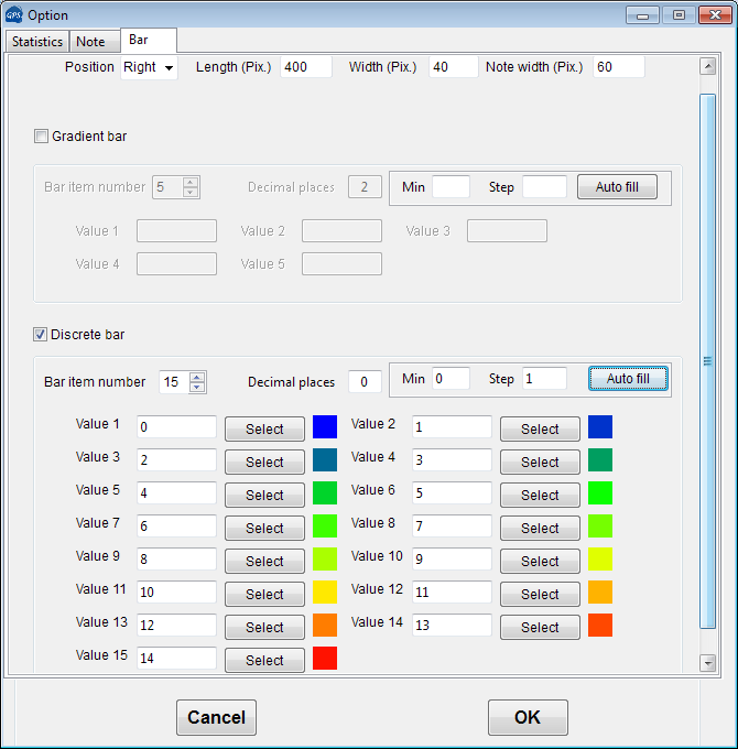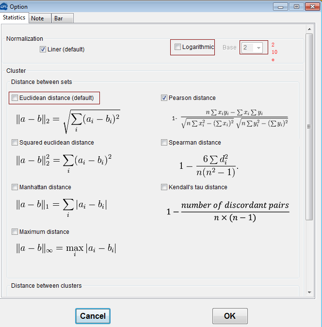 定義顏色標(biāo)尺連續(xù)或不連續(xù),右鍵Set up bar;Set up statistic: 設(shè)置繪制此熱圖使用到的數(shù)學(xué)上的屬性(歸一化和聚類方法),一般二代數(shù)據(jù)選擇對(duì)數(shù)歸一化方式。