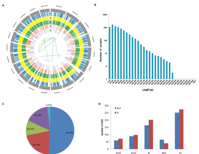 圖4.茶樹轉錄本及可變剪接特征分析