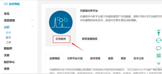 在農(nóng)學(xué)分析各平臺右側(cè)選擇代謝組分析平臺,如下圖: