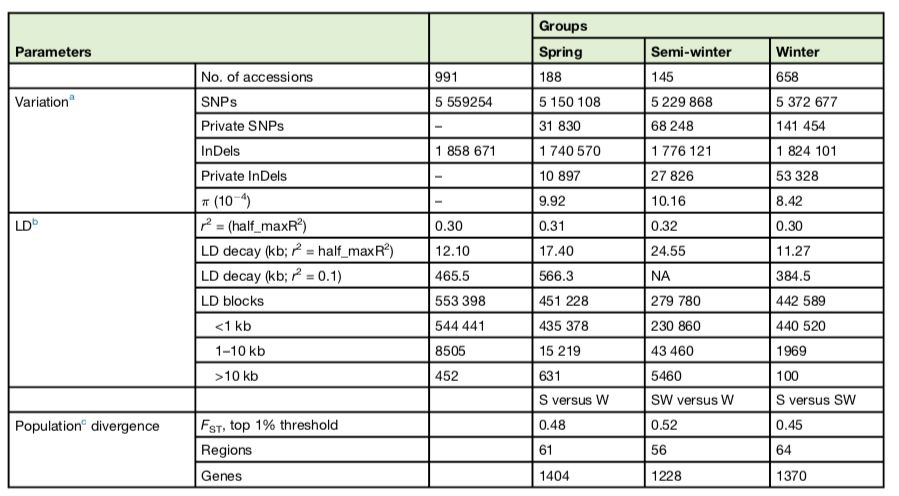 雖然已經(jīng)報(bào)道了油菜的冬季、半冬和春季生態(tài)型的遺傳變異,但不同的生態(tài)類(lèi)型在甘藍(lán)型油菜中的差異的關(guān)鍵等位基因變異尚不完全清楚。