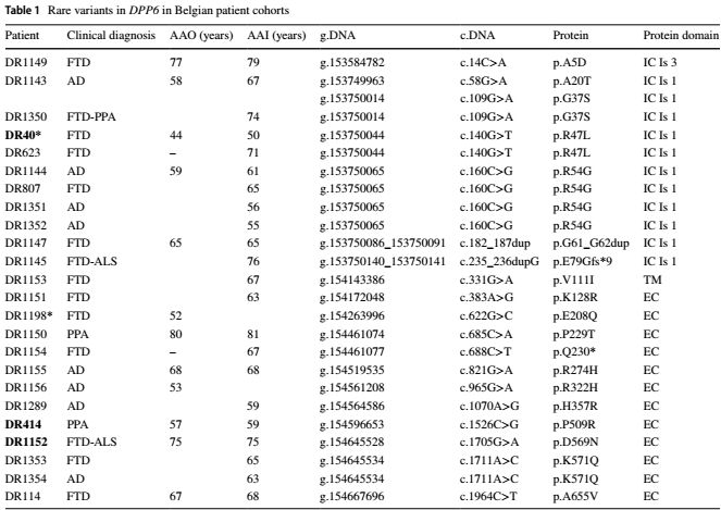 Loss of DPP6, in neurodegenerative dementia: a genetic player in the dysfunction of neuronal excitability[J]. Acta Neuropathologica:1-18.