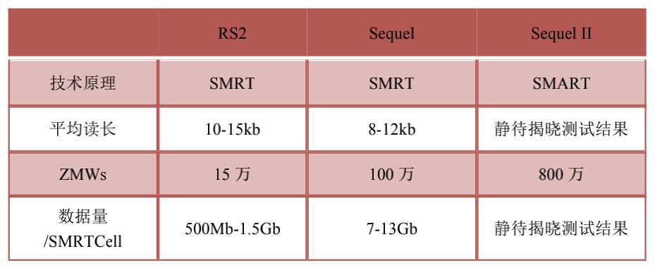PB平臺:RSII和Sequel系列儀器,目前Sequel系列平臺測序通量高、單Gb數(shù)據(jù)成本低、周期短的特點已將RSII平臺取代。