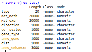 #rds格式是一種保存了數(shù)據(jù)的數(shù)據(jù)類型和結(jié)構(gòu)的格式,可以用函數(shù)saveRDS()來生成這種格式的文件。meth.rds文件來自R包示例文件,如需查看這個文件中都是什么,請參考(看不清熱圖的聚類結(jié)果怎么辦)的方法。另外,文件中只包含了DMR關(guān)聯(lián)基因的甲基化和表達(dá)量呈現(xiàn)負(fù)相關(guān)的DMR