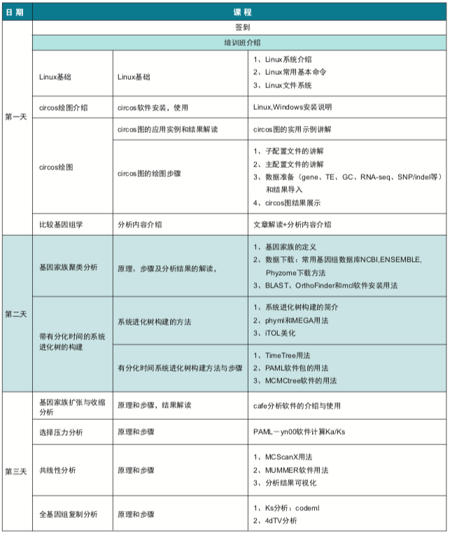 隨著測序技術(shù)的發(fā)展及測序成本的降低,越來越多的物種完成了基因組的組裝,這為多物種比較基因組學(xué)分析提供了大量的可用基因組資源。為了協(xié)助科研工作者對基因組結(jié)果進(jìn)行深度挖掘,本次培訓(xùn)將從基礎(chǔ)生信操作開始,從已發(fā)表的NG、NC等高水平文章入手,帶領(lǐng)大家學(xué)習(xí)比較基因組學(xué)常用的分析方法,從而滿足文章后期發(fā)表的需求,同時也為我們生物信息科學(xué)工作者們提供一個互相交流的平臺。