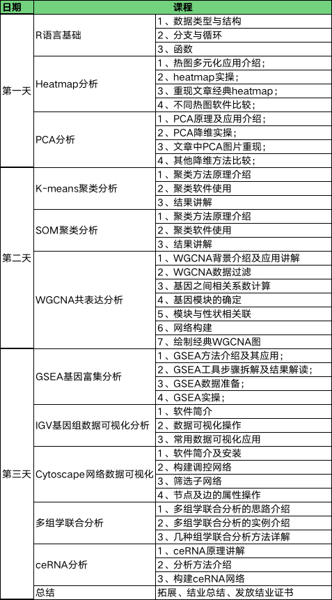 隨著測序技術(shù)的發(fā)展及測序成本的降低,轉(zhuǎn)錄組分析逐漸發(fā)展成為基一項礎(chǔ)的分析方法。越來越多的科研項目中使用轉(zhuǎn)錄組數(shù)據(jù)分析來做為分析的支持手段之一。為了協(xié)助科研工作者對轉(zhuǎn)錄組測序數(shù)據(jù)進(jìn)行深度挖掘,本次培訓(xùn)將從常用的個性化分析軟件操作入手,帶領(lǐng)大家學(xué)習(xí)轉(zhuǎn)錄組分析中常用的分析方案及實(shí)現(xiàn)方法,從而滿足文章后期發(fā)表的需求,同時也為我們生物信息科學(xué)工作者們提供一個互相交流的平臺。