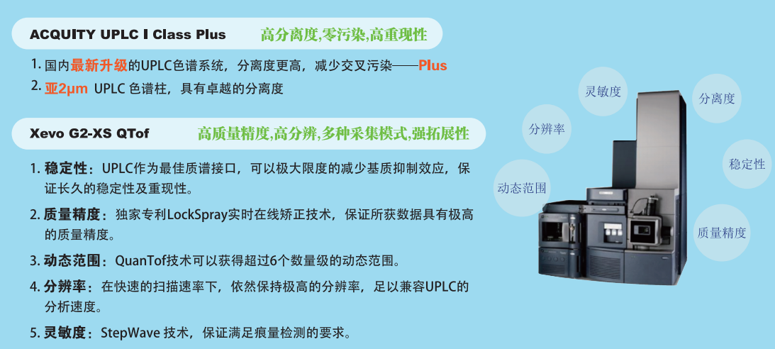 百邁客成功引進(jìn)Waters公司的Xevo G2-XS QTOF質(zhì)譜系統(tǒng),并配備UPLC I Class Plus色譜儀,這套系統(tǒng)擁有成熟耐用的技術(shù)體系和關(guān)鍵技術(shù),整體在分離度和準(zhǔn)確性上都有出色表現(xiàn),并且得到廣大科研工作者的認(rèn)可。百邁客依托于這套平臺,自主建立實驗體系,配合已經(jīng)開發(fā)出的代謝組分析流程,帶動著代謝組學(xué)技術(shù)在儀器平臺和分析內(nèi)容上逐步迭代更新。