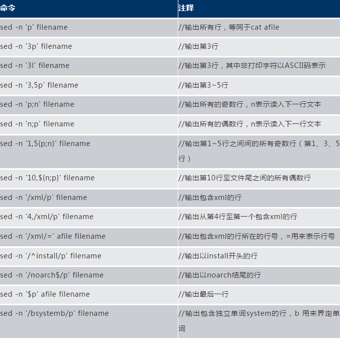 sed是一個強(qiáng)大的按行處理的命令,常用的命令如下: