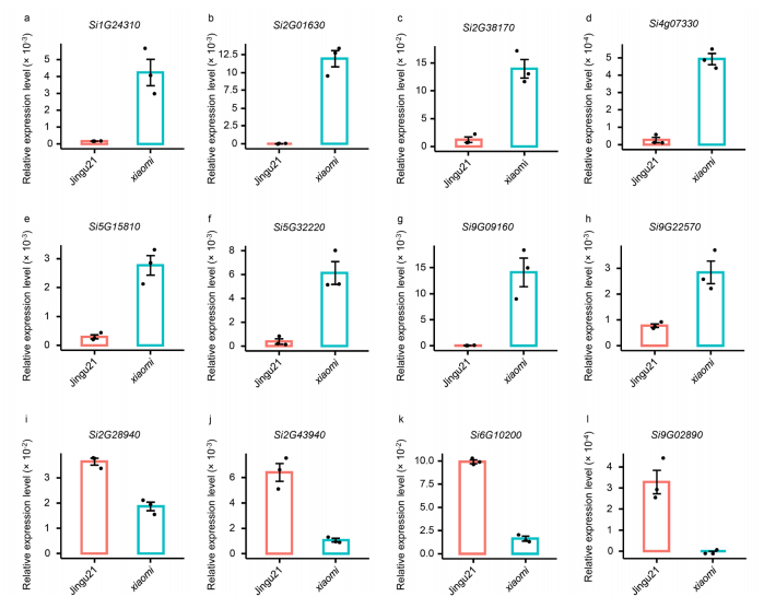 (注:這些蛋白質(zhì)編碼基因命名:Si(代表“小米”),其次是染色體數(shù)目和染色體上的基因數(shù),例如,1號染色體上的第一個和第二個基因分別命名為Si1G00010Si1G00020