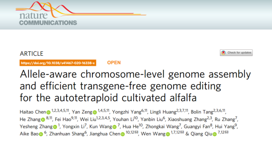 文章中利用了基因組三代測(cè)序技術(shù),獲得染色體級(jí)別的紫花苜?;蚪M的同時(shí),攻克了同源多倍體物種基因組組裝難題,組裝獲得了4個(gè)單倍型紫花苜?;蚪M,為后續(xù)基因編輯研究做了重要的鋪墊,進(jìn)而通過(guò)新技術(shù)CRISPR/Cas9基因編輯對(duì)控制相應(yīng)表型性狀基因進(jìn)行改造,對(duì)于紫花苜蓿后續(xù)分子生物學(xué)研究具有重要而深遠(yuǎn)的意義。