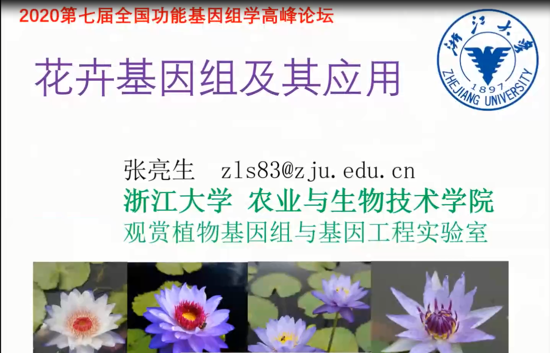 浙江大學(xué)張亮生教授對(duì)超高質(zhì)量的藍(lán)星睡蓮基因組構(gòu)建、睡蓮的花發(fā)育ABC基因鑒定、睡蓮的花香和花色合成途徑等研究結(jié)果進(jìn)行了詳述。并闡述了可作為培育藍(lán)色花瓣花卉的候選基因。除此之外還展示了滿(mǎn)天星、百合及其它知名花卉基因組,以及相關(guān)基因編輯研究近況與結(jié)果。張老師團(tuán)隊(duì)的研究將有望建立具有市場(chǎng)潛力的模式花卉品種。