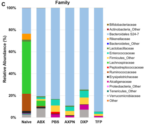 藥物介導(dǎo)的保護依賴于微生物群落的存在,其在喚起宿主防御以促進保護性免疫作用。本文通過構(gòu)建小鼠模型進行16S rRNA測序和轉(zhuǎn)錄組測序,發(fā)現(xiàn)藥物均增加了一些先天免疫應(yīng)答相關(guān)基因的表達??傊?,先導(dǎo)藥物通過激活I(lǐng)L-33和通過宿主防御機制去清除病原體,促進疾病減輕和小鼠模型的生存。
