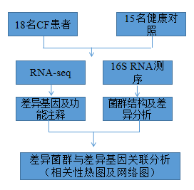 本文作者通過對囊性纖維化患者和健康對照者的結(jié)腸黏膜樣本進行RNA-seq,以確定差異表達的宿主基因。16S rRNA測序研究結(jié)直腸粘膜特征微生物,并確定患者與健康對照之間的差異菌群。最后作者對腸道粘膜組織特定的細菌與宿主基因之間的關(guān)系進行了建模。