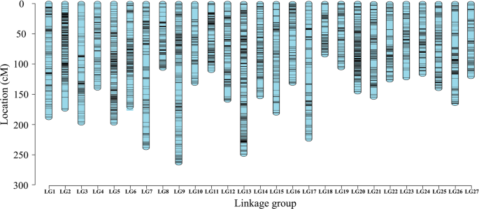 遺傳圖譜(Genetic map),是基于全基因組重測(cè)序技術(shù)或簡(jiǎn)化基因組測(cè)序技術(shù),對(duì)某物種家系樣本進(jìn)行測(cè)序,利用生物信息學(xué)方法,開發(fā)SNP分子標(biāo)記,計(jì)算標(biāo)記間的遺傳連鎖距離,繪制高密度遺傳圖譜。利用遺傳圖譜,主要可以進(jìn)行QTL定位,比較基因組,輔助基因組組裝等科研工作。本研究報(bào)道了利用百邁客SLAF測(cè)序技術(shù),對(duì)菊花F1群體測(cè)序并構(gòu)建高密度遺傳圖譜,用于菊花花型等性狀的QTL定位及候選基因鑒定的研究。