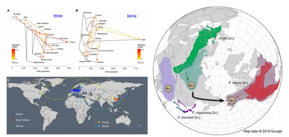 除了祖先來源的探索,物種的進(jìn)化與傳播歷程也是每一個(gè)種質(zhì)資源研究者的重點(diǎn)關(guān)注對象。