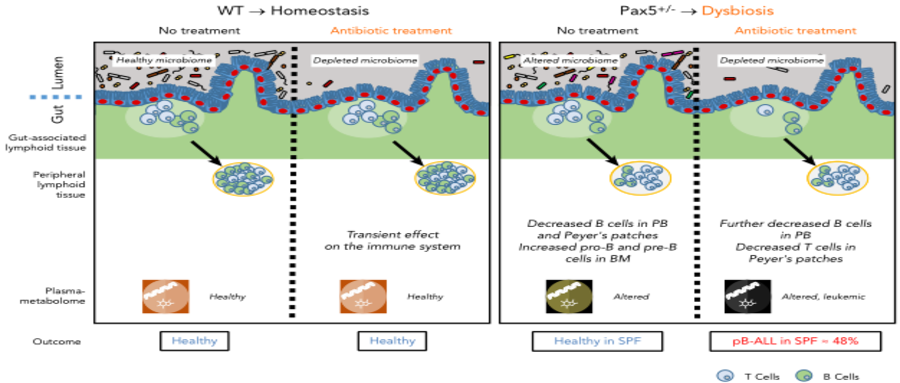 • 對pB-ALL的遺傳易感性形成了一個不同的腸道微生物群。