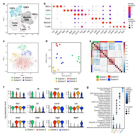 1.?單細胞RNAseq分析揭示了癌癥相關(guān)成纖維細胞不同亞群的存在