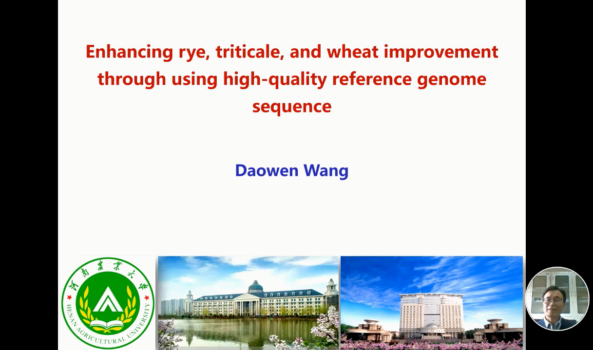 河南農(nóng)業(yè)大學(xué)王道文研究員詳述了黑麥具有較大的基因組特征(~7 – 8 Gb),其抗寒、抗病、抗逆和耐旱等多種優(yōu)良的特性對谷物研究和生產(chǎn)帶來了巨大貢獻(xiàn)。并對黑麥染色體的進(jìn)化,特別是與水稻、小麥、大麥的染色體的結(jié)合進(jìn)行了闡述。介紹了中國黑麥細(xì)胞遺傳學(xué)和育種研究相關(guān)進(jìn)程與成果。表示黑麥泛基因組研究將擴(kuò)大對黑麥基因組多樣性的了解,促進(jìn)黑麥、小黑麥和小麥的更有效改良。最后王道文研究員表示基因組學(xué)知識和基因組學(xué)工具正在給作物改良帶來新一輪的綠色革命。