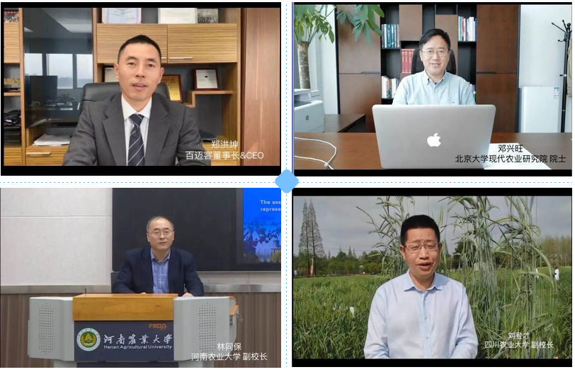 會議伊始,由百邁客生物科技有限公司董事長兼CEO鄭洪坤先生、北京大學(xué)現(xiàn)代農(nóng)業(yè)研究院 鄧興旺院士、河南農(nóng)業(yè)大學(xué)林同保副校長、四川農(nóng)業(yè)大學(xué)劉登才副校長分別為會議致辭,同時表達(dá)了對本次完成黑麥基因組的破譯的祝賀。