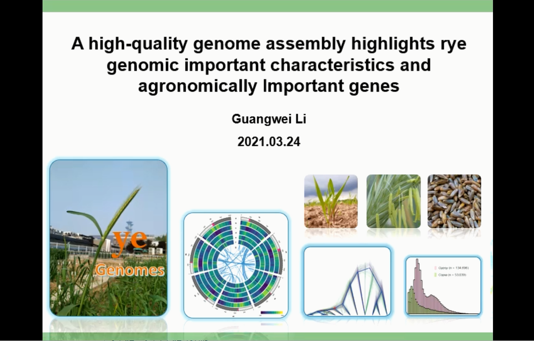 河南農(nóng)業(yè)大學(xué)李廣偉博士系統(tǒng)解析了黑麥的演化歷史,展示了黑麥的分類起源和世界遺傳資源分布,并表示黑麥作為全球麥類基因資源具有重要的研究意義。通過中國栽培種“威寧黑麥”基因組的高質(zhì)量精細(xì)物理圖譜的構(gòu)建,展示了其復(fù)雜的基因組特征、復(fù)雜的染色體變異以及淀粉合成、儲存蛋白、抽穗期及馴化等相關(guān)基因的詳細(xì)機(jī)制。最后李廣偉博士表示威寧黑麥基因組的破譯對深化比較谷類基因組研究,加速黑麥及相關(guān)谷類作物的遺傳改良具有重要價值。