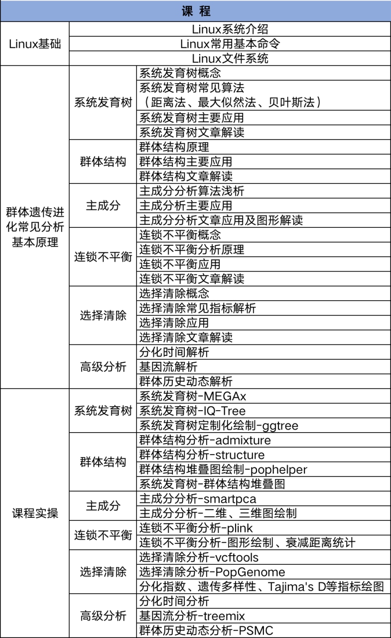 應(yīng)各位老師需求,百邁客特開(kāi)辦遺傳進(jìn)化生信分析培訓(xùn)班,面向全體科研工作者,系統(tǒng)學(xué)習(xí)遺傳進(jìn)化中常規(guī)內(nèi)容,并重點(diǎn)進(jìn)行高級(jí)圖形繪制。課程設(shè)計(jì)覆蓋基因流、分化時(shí)間、群體歷史動(dòng)分析三塊當(dāng)前熱點(diǎn)研究?jī)?nèi)容。