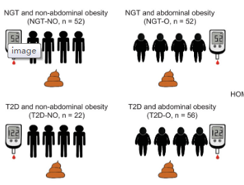材料:四組性別匹配的成年個體的 182 名參與者,4組分別為正常非肥胖(n=52)、正常肥胖(n=52)、瘦型T2D患者(n=22)、肥胖型T2D患者(n=56)