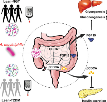 通過對βCDCA對胰島素分泌的可能作用的研究發(fā)現(xiàn),A. muciniphila?可能通過降低腸道中βCDCA?的水平來刺激胰島素分泌。